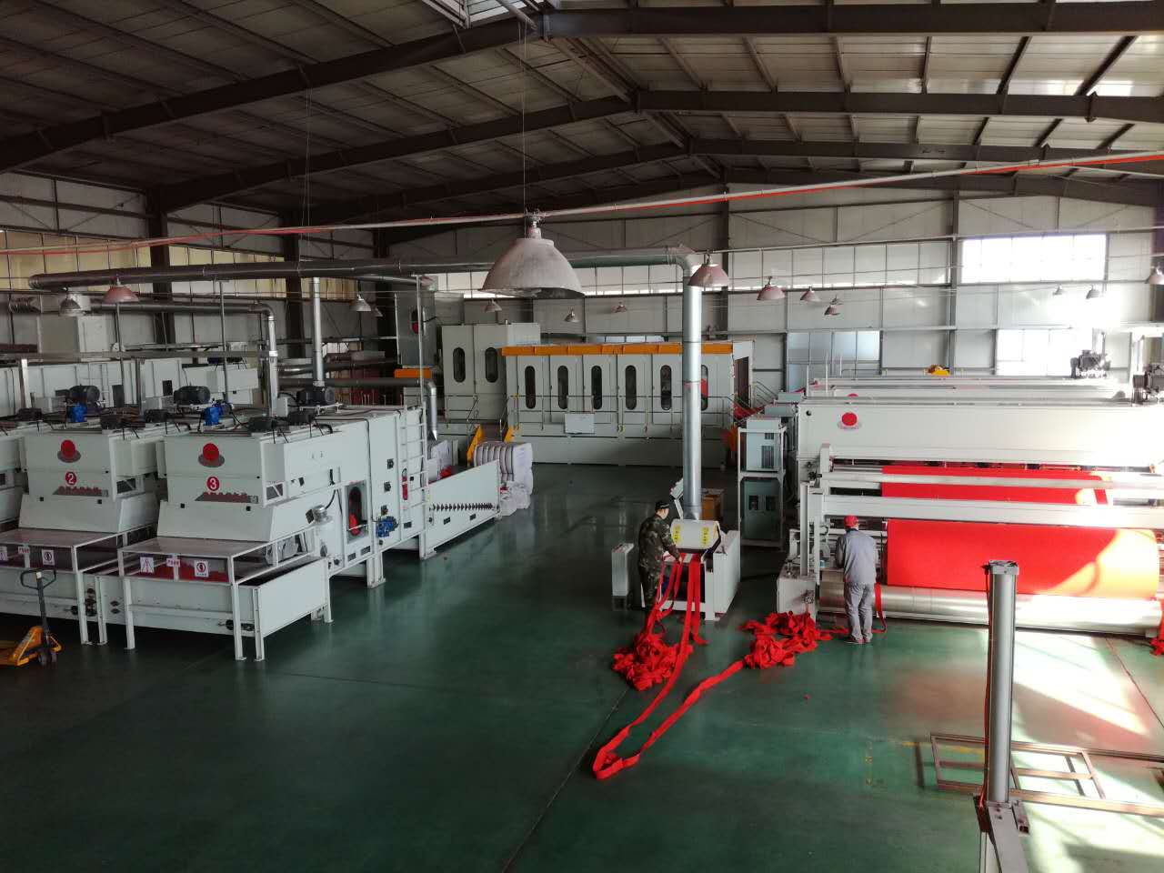 公司總投資1億余元,首期工程已完成投資3000萬(wàn)元。現(xiàn)已建設(shè)標(biāo)準(zhǔn)廠房15000余平方米、引進(jìn)多條無(wú)紡布生產(chǎn)線。其中,針刺無(wú)紡線4條、起絨機(jī)兩臺(tái)、電腦提花機(jī)1臺(tái)、條紋機(jī)1臺(tái)、地毯整理烘干定型線兩套。